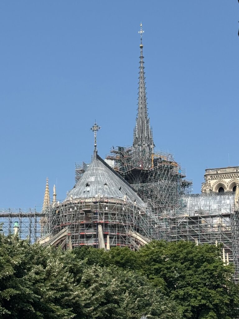 While Notre Dame’s interior was open to the public, along with the eucharistic celebrations, the exterior and the higher superstructure, bell tower, etc remain closed.
