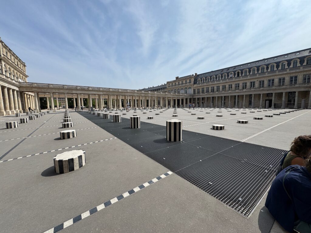 We wandered a lot – enjoying the days and the weather – being out and about. Stopping for ice cream and sitting by the fountain in the Jardin des Tuileries. One surprise was Les Deux Plateaux – art in a courtyard – in part to cover up ventilation shafts from the lower levels!