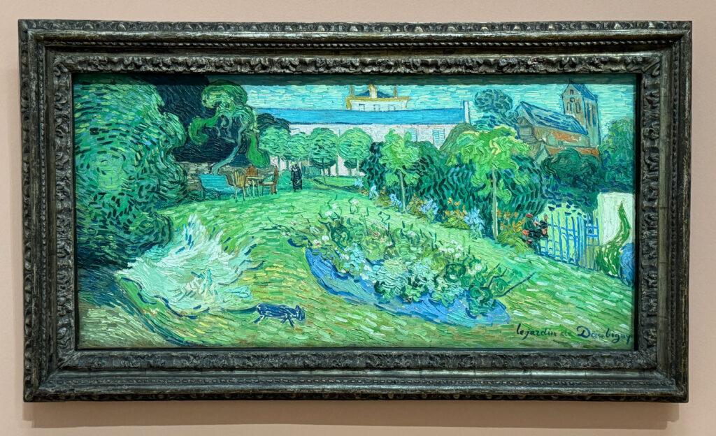 and other Van Gogh paintings, such as “the Garden of Daubigny” – one of three versions of the same motif. Note the black cat in the foreground indicates this is the first in this series.