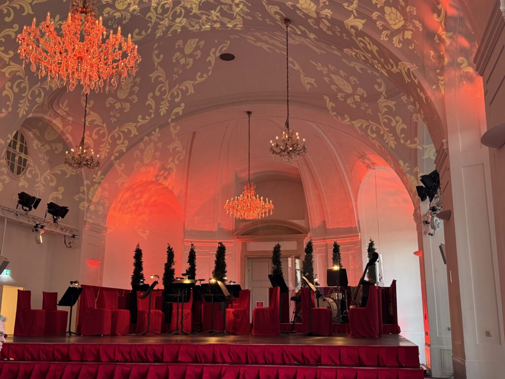 Orchestral stage in the Schönbrunn Palace Orangery prior to the concert.
